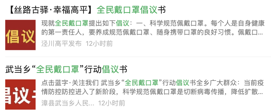 甘肃、四川等地也开启了“接力”模式,发起“全民戴口罩”倡议。