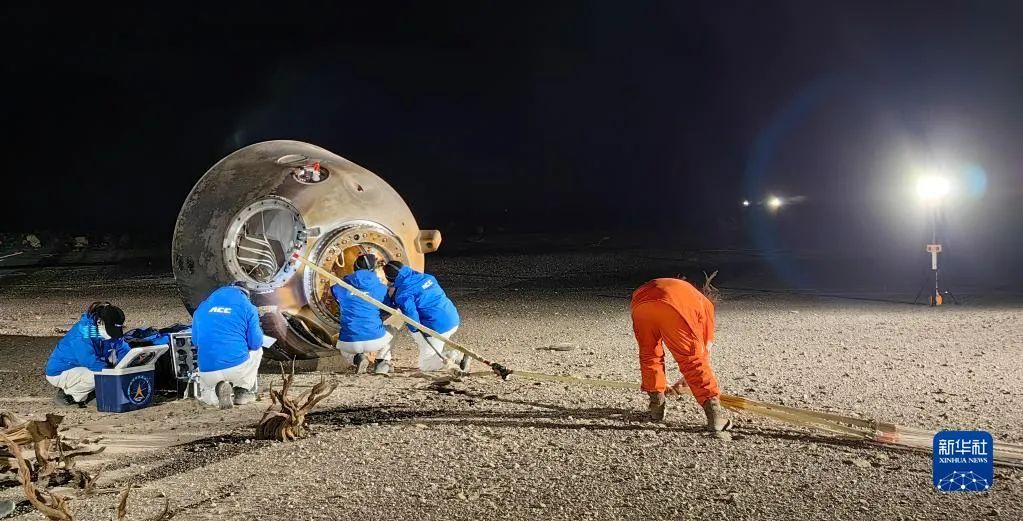 12月4日,神舟十四号载人飞船返回舱在东风着陆场成功着陆。新华社记者 李刚 摄
