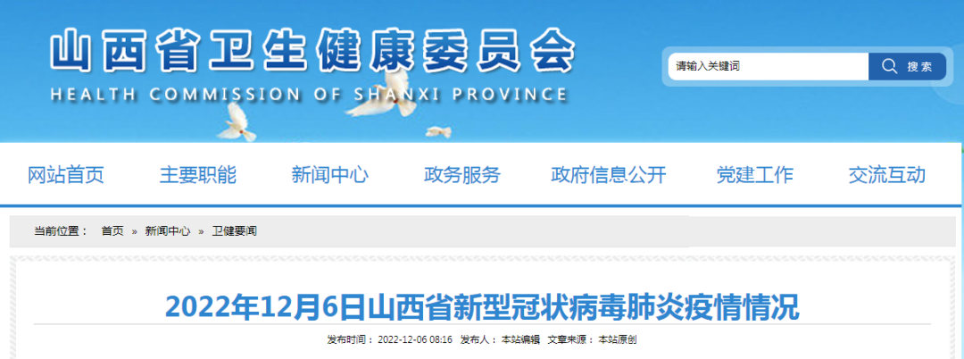 2022年12月6日山西省新型冠状病毒肺炎疫情情况