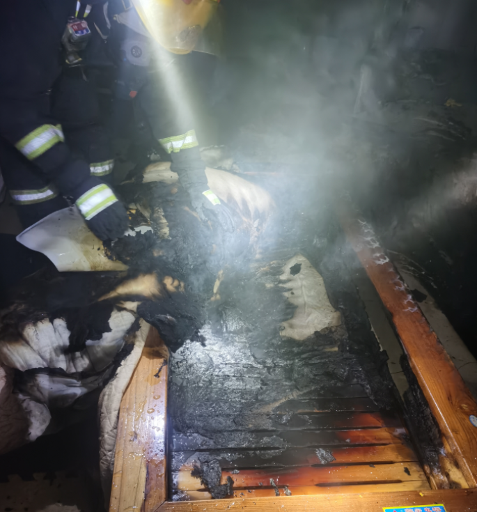 12月4日晚,湖南省怀化市某家属楼发生火灾,消防救援人员进入屋内后,发现起火物是位于卧室的电火箱,正往外冒着明火,消防救援人员立即用水枪控制火势蔓延,经过2分钟的紧急扑救,火势被成功扑灭。