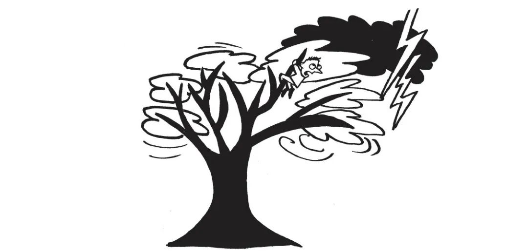 想象一下,当暴风雨来临时,你正爬在一棵树上面。