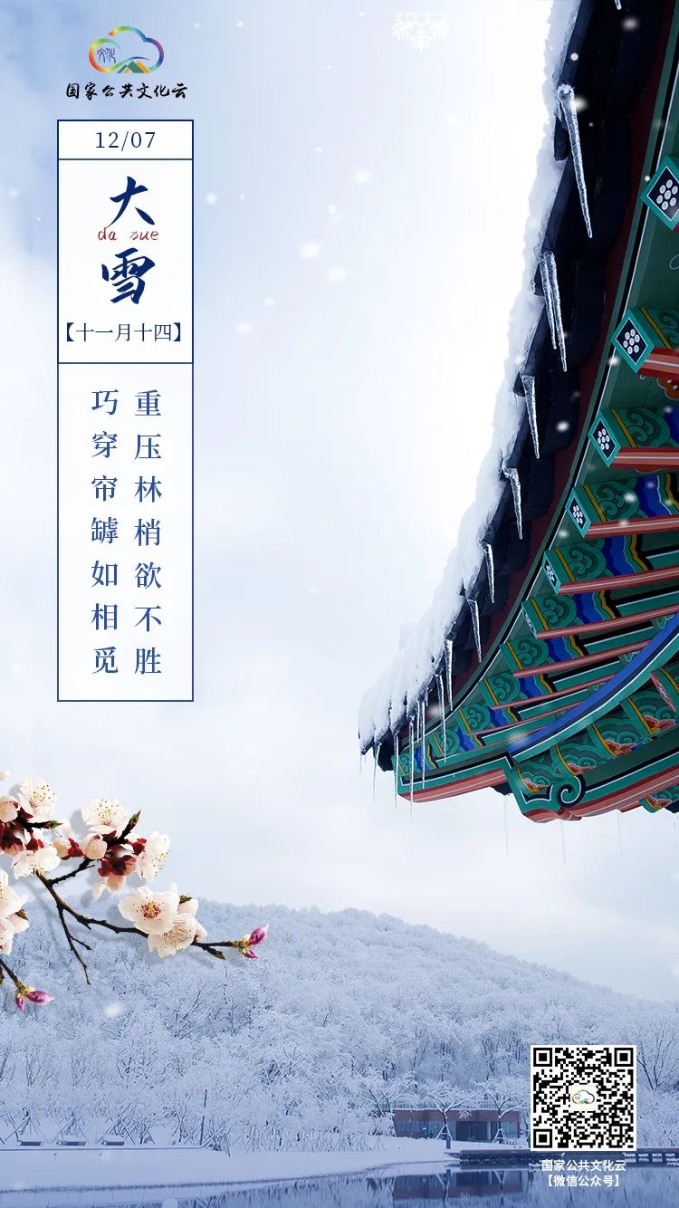 “大雪”是农历二十四节气中的第21个节气,更是冬季的第三个节气,标志着仲冬时节正式开始。《月令七十二候集解》说:“大雪,十一月节,至此而雪盛也。”
