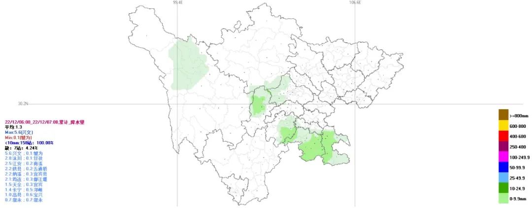 昨天08时到今天08时,盆地最低气温5~7℃;最高气温8~11℃。