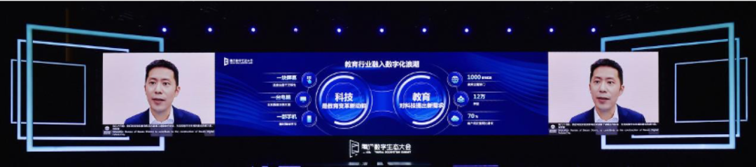 “教育科技快速发展,数字化的产品和应用在‘教、学、管、评、测’等教育场景中爆发式落地应用。一块屏幕可以连接全国千万师生,一台电脑能实现全区数据互通,一部手机能让职场人随时随地学习……”