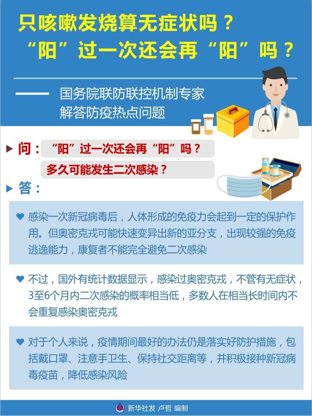 奥密克戎致病力在减弱,感染后大多表现为无症状或轻型。只咳嗽、发烧算无症状吗?“阳”过一次还会再“阳”吗?围绕公众关注的热点问题,国务院联防联控机制有关专家作出专业解答。