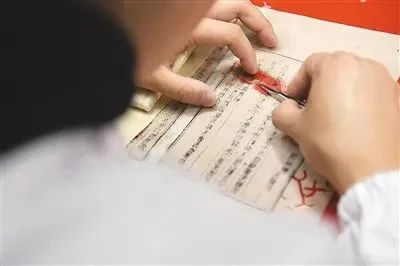 图为在安徽中医药大学图书馆古籍部,古籍修复师茆可人进行古籍修复。