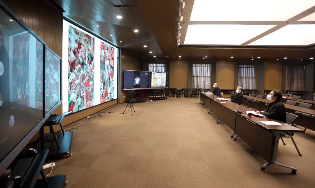 进入中国画与书法学院《传统重彩壁画临摹》的课堂,金瑞老师正在向同学们介绍法海寺等中国古代寺观壁画的材料、表现形式和技法。院长范迪安表示,目前望京校区疫情形势较为严峻,但我们必须坚持组织好教学,期末调整为线上教学,无论在何种情形下,教学是根本,越是艰难,越要稳住教学。他谈到,对中国画的同学来说,既要做好基本写生训练,又要提高自己的历史与理论学养,沉下心思考更深层次的学术问题,为下一步创作形成新的思路。中央美院不仅要培养画家,更要培养宣传、推广中国优秀传统文化的艺术家,要真正学懂中国画,把中国画蕴含的人文理念传播好。