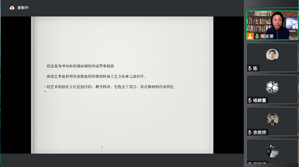 副院长邱志杰为周老师的精彩讲授点赞,他谈到,“版画系的课程与材料关系密切,从版画出发拓展到更广阔的媒介。周老师讲欧洲抄纸方式与中国抄纸方式的区别,讲到了纤维的层面,这是用科学思维研究材料,很有启发性。”他建议同学们在家里也可以创造条件进行创作,希望大家动起来。