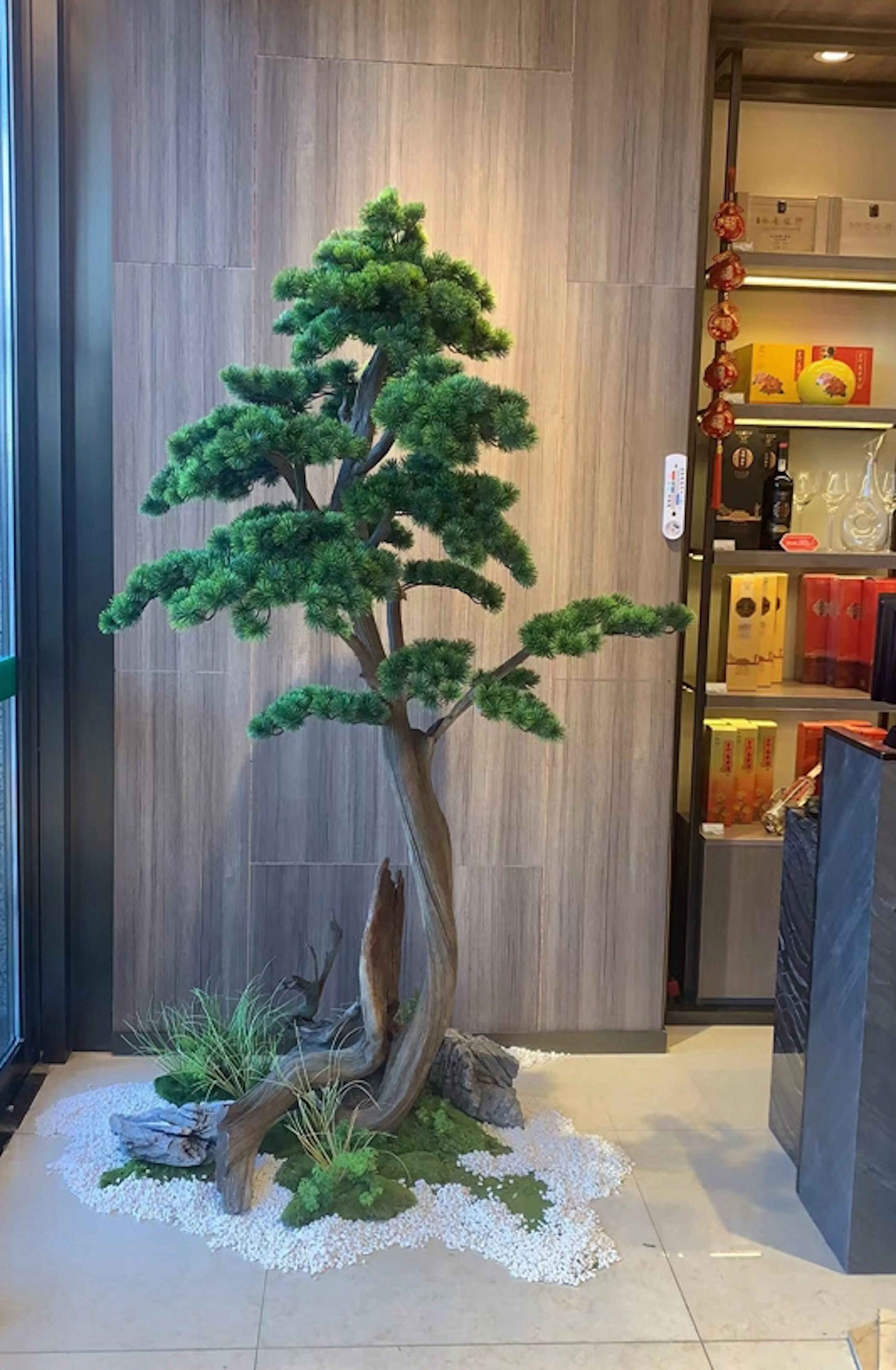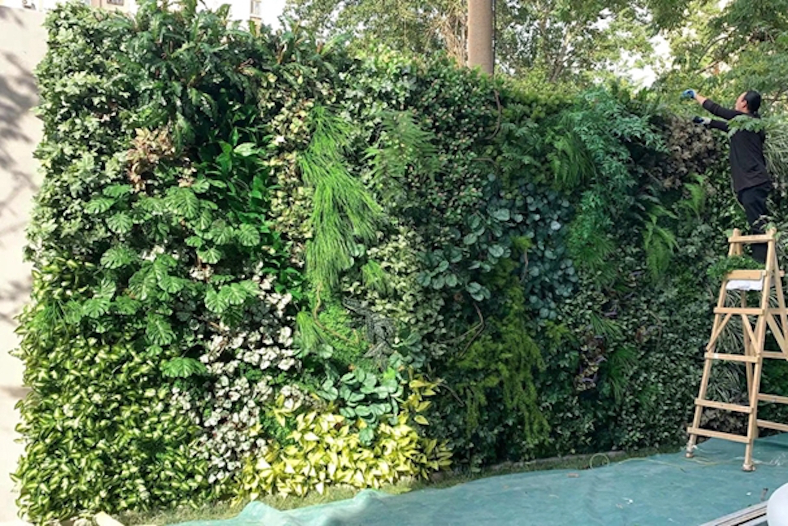 做5米多高的绿植墙,在视线以上区域采用高仿真绿植产品,与下部的活植物结合,既有逼真的效果,又免去了日后高空维护植物的问题。回看这些年仿真花的市场发展趋势,丁秋筠认为这几年仿真绿植市场变得更好,以前以花为主的设计已变成了现在以绿植、枝叶材料为主:“可能人们现在更喜欢绿植带来的轻松感和自然感吧。”丁秋筠说。