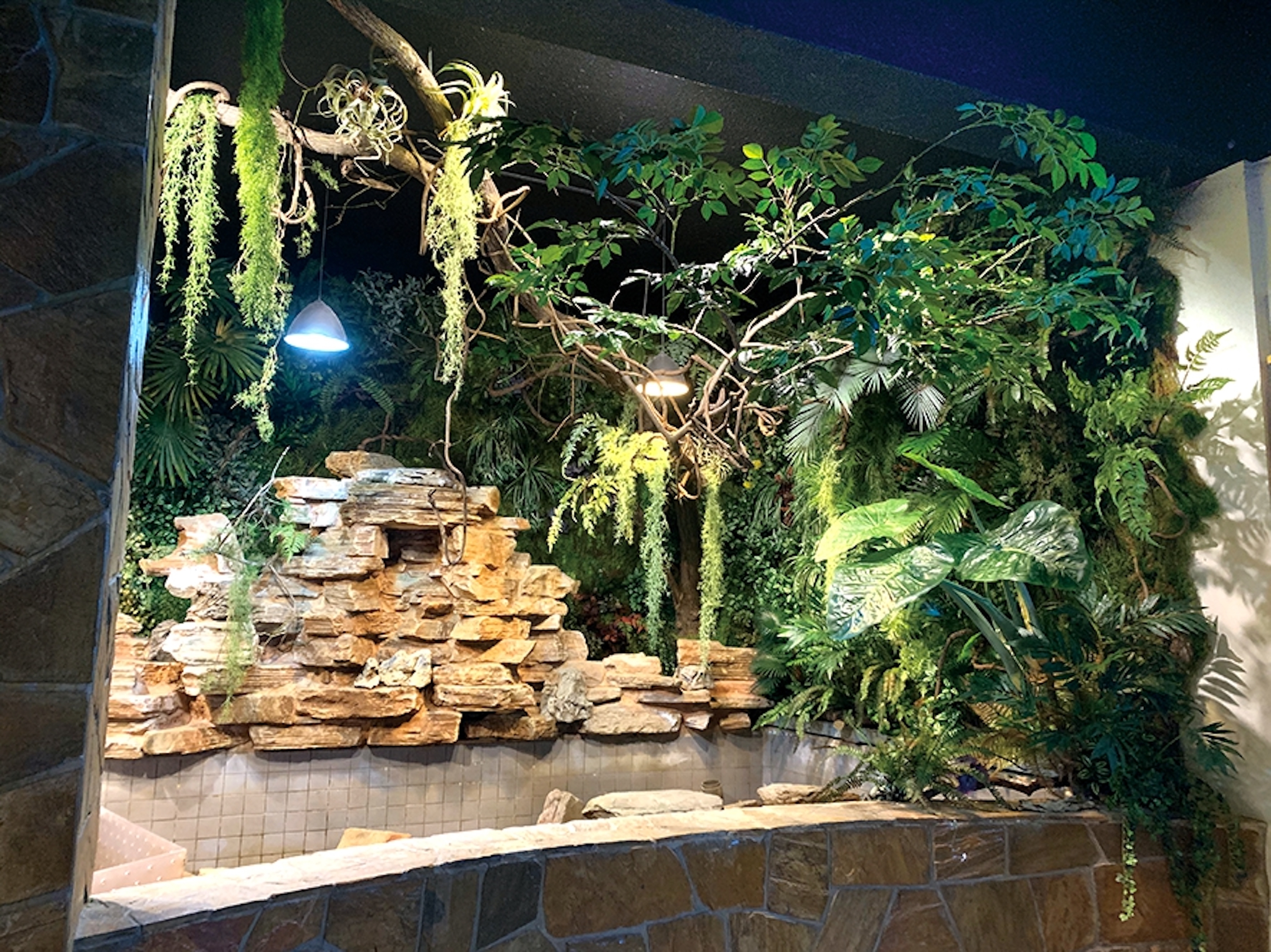从进入北京市场开始,丁秋筠每到圣诞节都会很忙。当时在工程市场中,圣诞布置是一个近乎仿真花“独占”的市场,商场、酒店为营造节日促销氛围,会布置大型圣诞树等主题景观。但从七八年前开始,市场需求逐步向商业空间布置、大型装饰作品转变。她和位于北京大兴的野生动物园已经合作了几年,逼真的仿真植物在爬虫馆、企鹅馆里完美地还原了动物们的生存环境,充分发挥了仿真花零维护的优势。在工程中,仿真花加上活植物共同呈现出设计效果的方式已越来越多,如创作树林的时候,在真实的树干材料上加上仿真树叶,让仿真进阶成乱真。