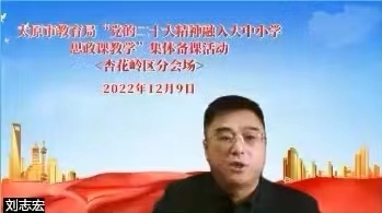 会上,杏花岭区教育工委委员、杏花岭区教育局副局长刘志宏在致辞中指出,今天杏花岭区教育局组织分会场,召开集体备课会,目的是以此为契机,发挥集体备课优势,充分发挥好思想政治理论课育人主渠道、教学主引擎、思想引领主阵地的巨大作用和影响。