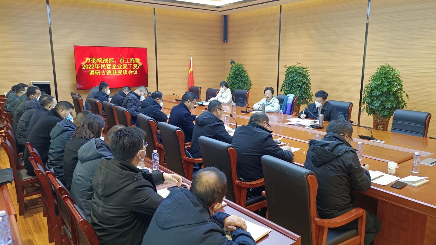 12月13日,市委统战部、市工商联2022年民营企业复工复产调研组来到古浪县调研。副县长李涛,县政协副主席、县工商联主席鲁国锦一同调研。