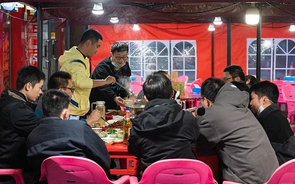 12月7日,重庆市两江新区,市民在一家烤鱼店就餐。(图片来源:人民视觉)