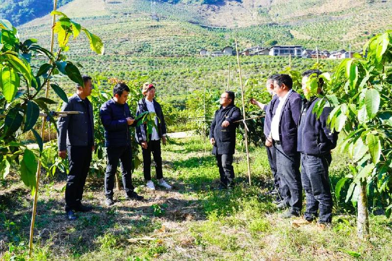 群众在哪里,党的二十大精神宣讲就到哪里。坝坝会结束后,村组干部又来到芒果种植园,和农户一起学习党的二十大精神。