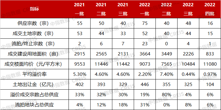 从今年成都总共4批次集中供地的成交情况来看,累计成交地块156宗,其中溢价成交地块37宗,底价成交地块占比达76%。