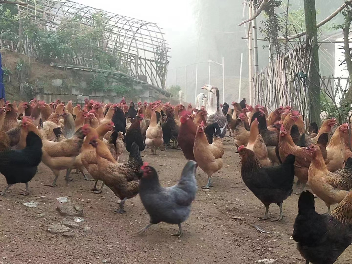 在湖北省浠水县丁司垱镇陆庙铺村,有一家很有特色的“和平农场”,在这里,青山围绕,蓝天白云覆盖,植被茂密森盛,自然条件优越。这里散养的鸡品种叫江汉土鸡,还有本地的黑土猪,具有纯粗养,慢生长的特点。