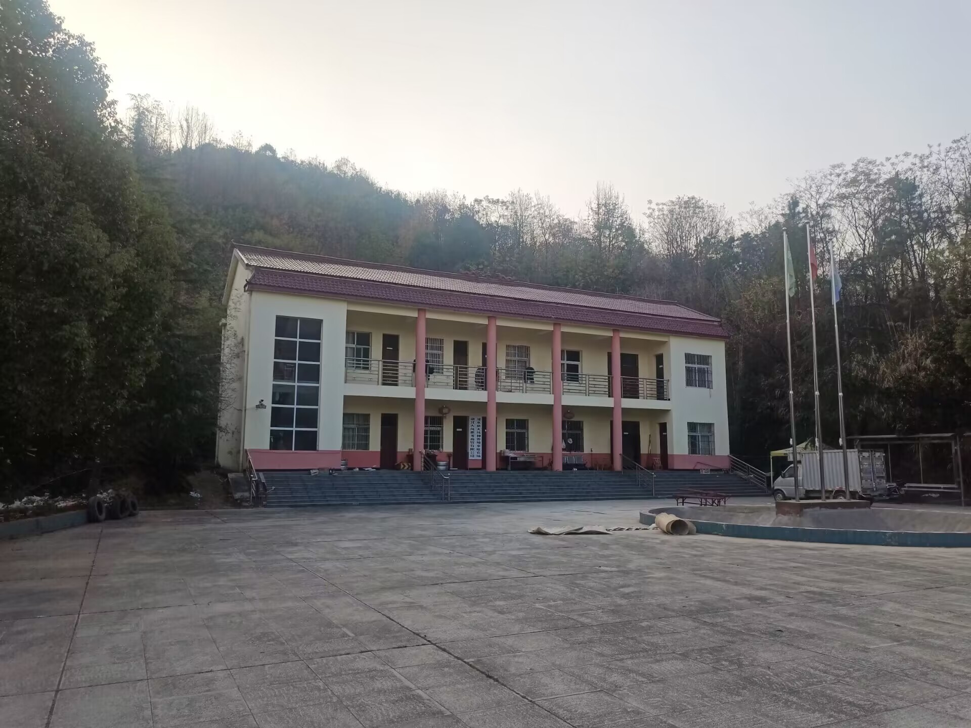 每天的晨曦来临时,办公楼就一片灯火通明,阿姨在食堂煮工人的早饭,工人们有的在准备鸡料和猪料,有的在忙碌农场修葺和改建,农场因为地处大山深处,所以做饭都是用柴火灶,待到早饭做熟时,已是8点多,工人们陆续回来吃完饭,就又各自忙碌去了,各司其职,人尽其才。