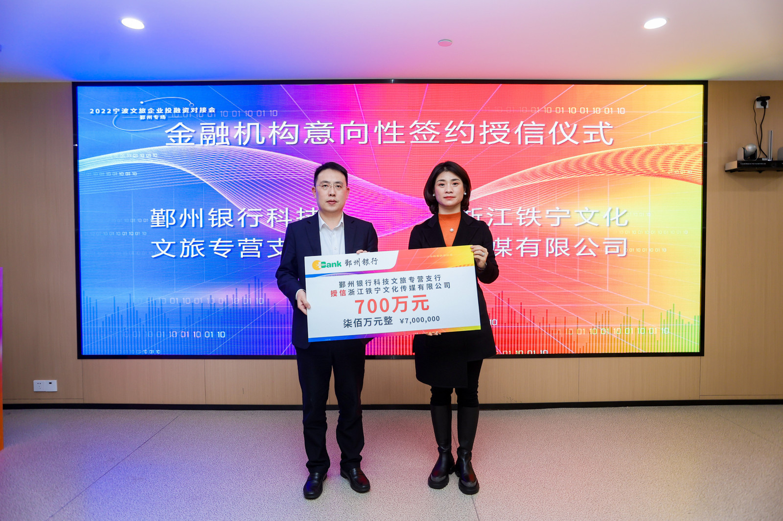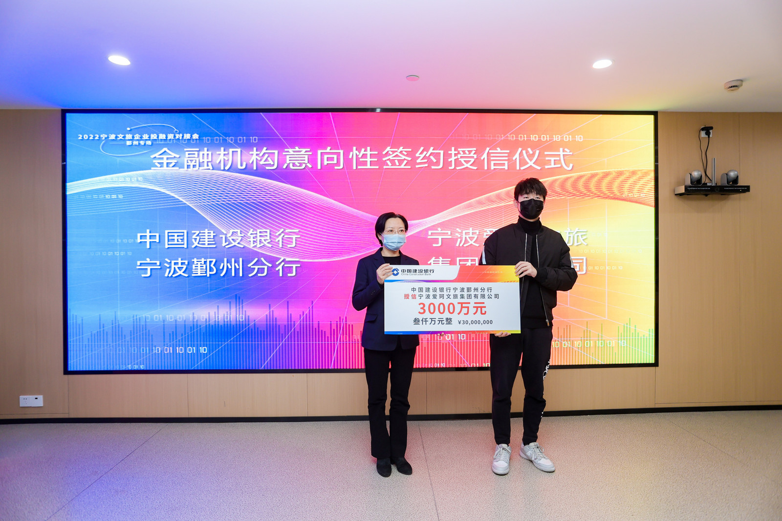对接会现场,中国建设银行宁波鄞州分行与宁波爱珂文旅集团有限公司现场达成3000万元的授信,鄞州银行科技文旅专营支行与浙江铁宁文化传媒有限公司达成700万元的授信;鄞州文广旅体局和宁波市股权交易中心签订了文旅企业上市培育计划。