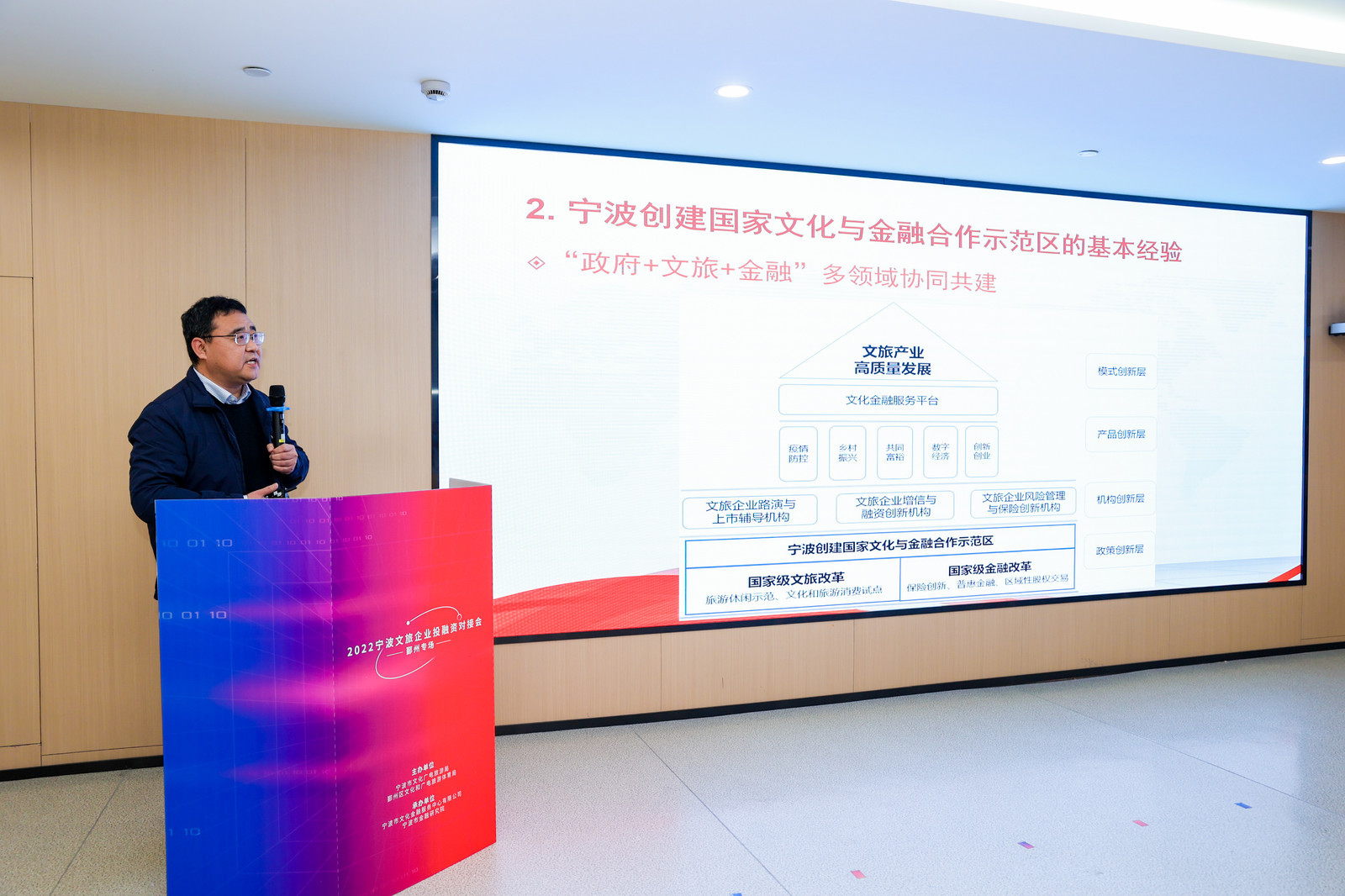 会上,宁波市金融研究院副院长滕帆作了题为“宁波文化与金融合作创新的基本经验与发展建议”专题演讲。他表示,宁波创建国家文化与金融合作示范区已经初步形成了“政府+文旅+金融”多领域协同共建;“文旅+金融+科技”跨业态融合发展等基本经验,建议加大文化信贷创新力度;推动文化直接融资工作;鼓励文化保险创新;大力发展文旅数字普惠金融。