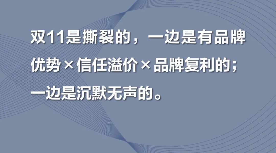双11是撕裂的,一边是有品牌势能x信任溢价x品牌复利的;一边是沉默无声的。
