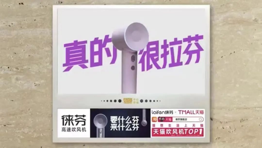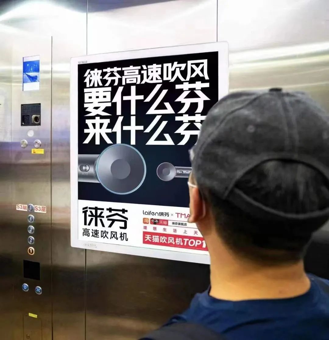 于是,徕芬吹风机下半年大幅投入霸屏分众,超高频次饱和攻击,在消费者心目中,植入了“国产高速吹风机=徕芬”的心智认知。