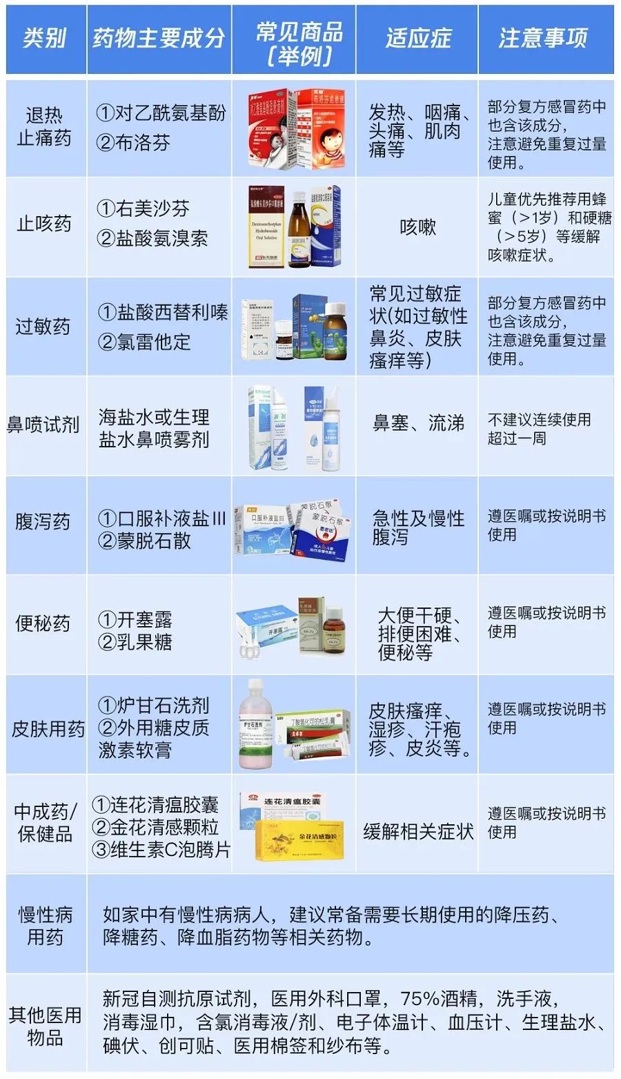 以下总结了一份家用“对症用药”小贴士: