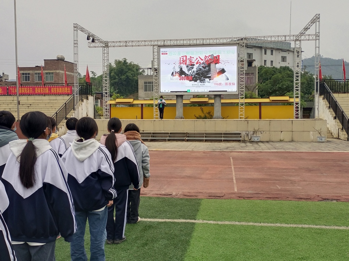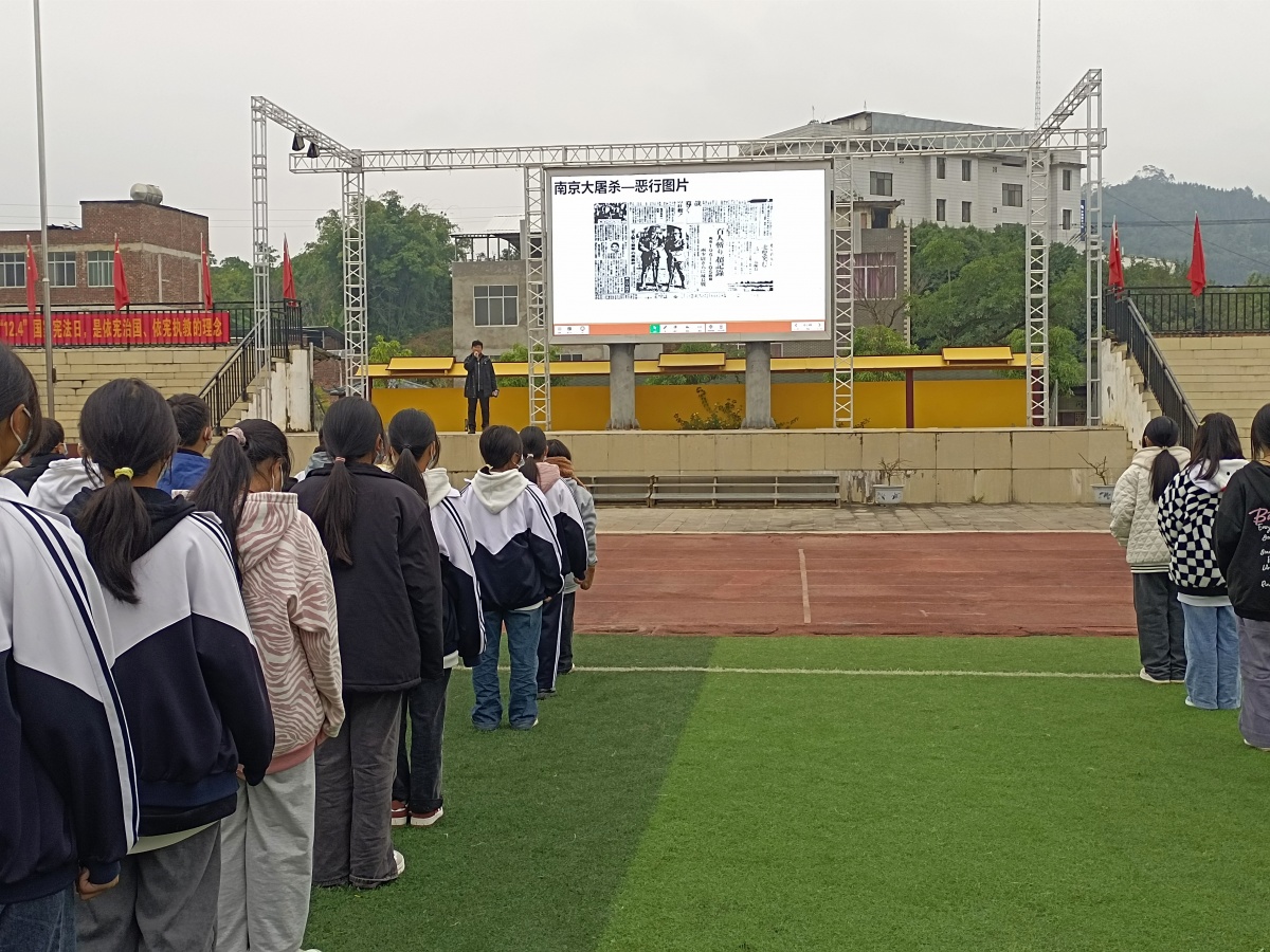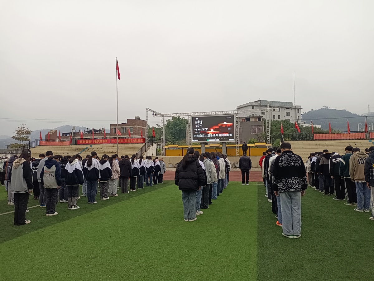 2022年12月13日,在南京大屠杀85周年纪念日,国家第9个公祭日的今天,西林县古障镇初级中学组织全体师生进行了“铭记历史、缅怀先烈“暨国家公祭日主题爱国教育活动。