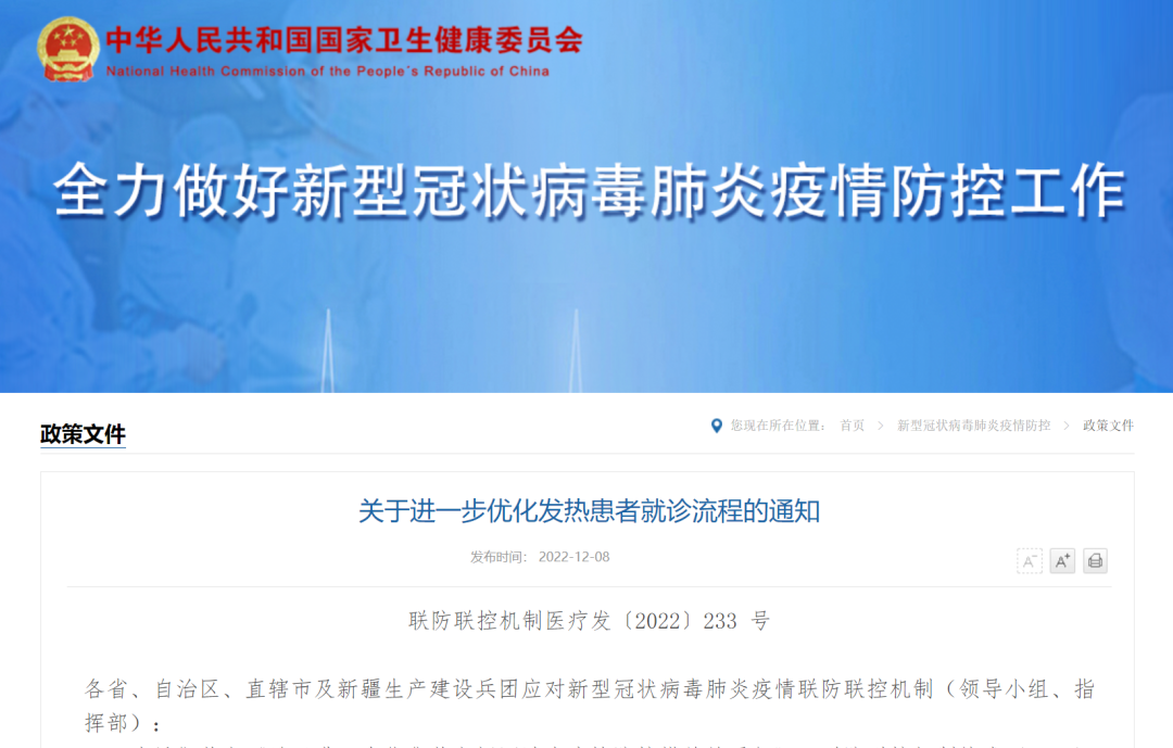 关于进一步优化发热患者就诊流程的通知