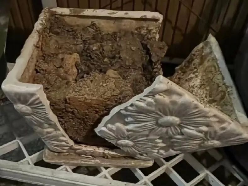 压在了损坏的花盆下