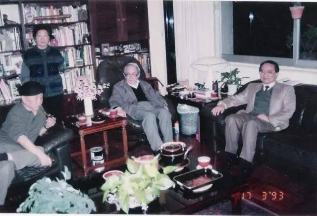 △金庸(右一)、黄永玉(左一)与罗孚(右二)夫妇(1993年)