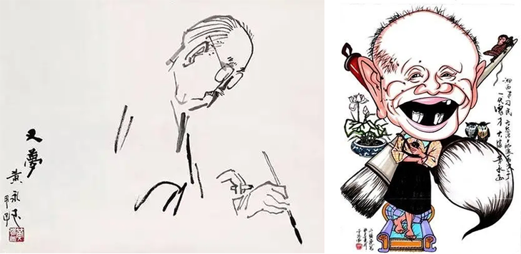 △左图黄永玉自画像;右图漫画家笔下的黄永玉。