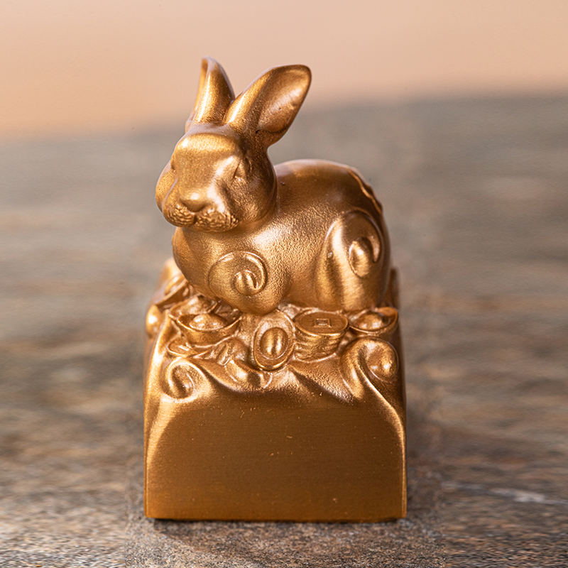 印章上有瑞兔,脚踩元宝,祥云披身,仰天凝视远方,看到都被感染奋发的心情。