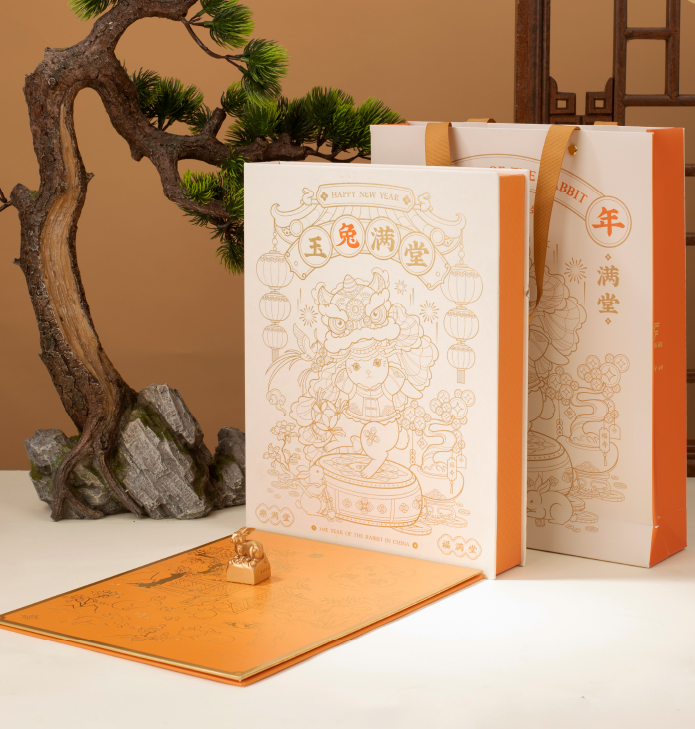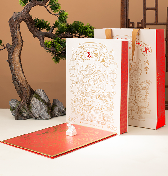 将这样一套寓意“玉兔乐满堂、福满堂”的美好年礼,赠予上司知己,兔来喜气浓、兔奔碧野宽。