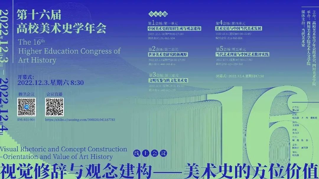 2022年12月3日、4日,第十六届全国高等院校美术史学年会在四川美术学院举办。全国高等院校美术史学年会是具有权威性、连续性、开放性的中国美术史学研究专业会议,是美术史学界同仁交流切磋的重要平台。本届年会以“视觉修辞与观念建构——美术史的方位价值”为主题,围绕中国美术史的知识生成与观念建构、世界美术史研究的新视野、文明互鉴与跨文化美术史、美术史论与中国当代美术发展、当代艺术理论与中国艺术批评实践等五个单元展开交流与研讨。