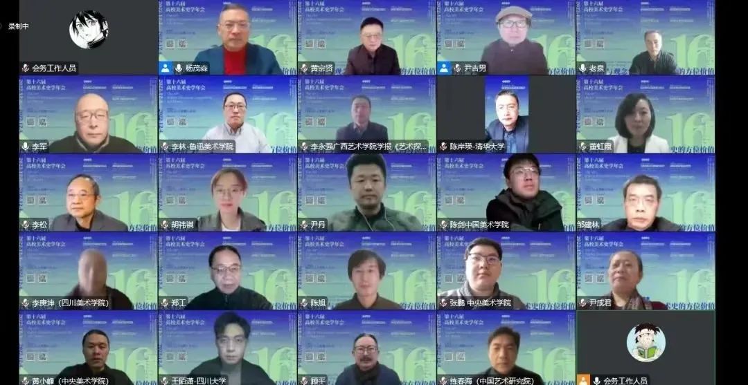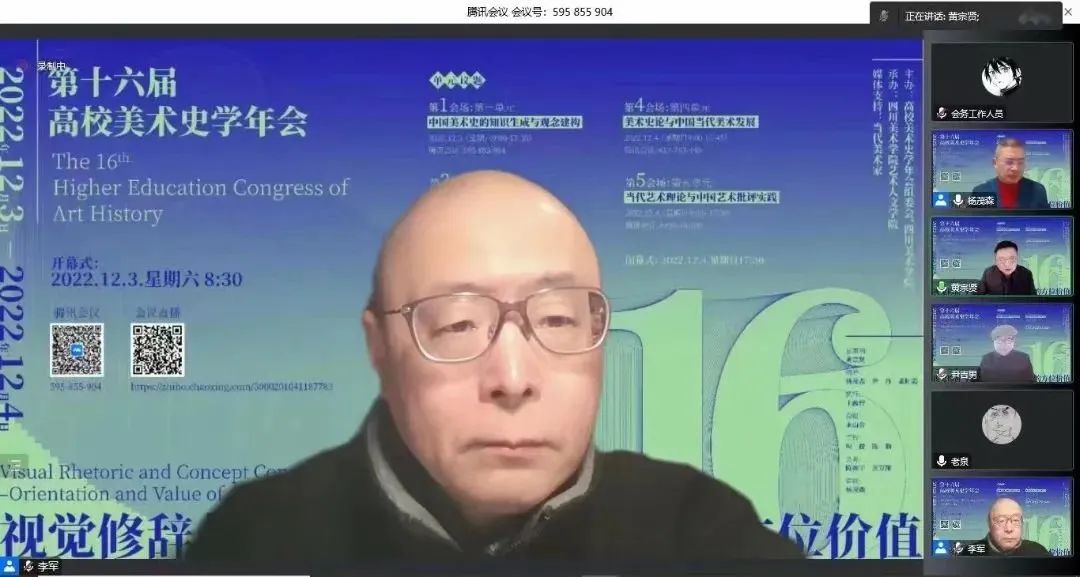 如果美术史有形状的话,本次美术史学年会的形状是什么?尹吉男谈到,“我个人的感受,世界美术史学界的‘中国学派’正在形成,方法论的自觉已经经历了尝试和试验阶段,今天已经步入了全面的实践阶段和发力时期。如果以三联书店的“开放艺术史丛书”作为一种象征的话,今年已经从翻译和介绍的阶段进入了原创阶段。杨振宇、黄小峰、宋石磊等学者不同程度地系统梳理了范景中、李军、沈语冰、常宁生和我本人等学者主编的美术史学丛书的贡献。本次年会的关键词很多,视觉修辞、视觉史方法论、观念建构、知识生产、知识生成、传统再造、跨文化美术史、新视野、宇宙观、物质性、生命体、情景分析、政治意涵、表征意义、价值重构、图像意图、全球同步化、生产交流和风格互鉴、构成与转译、视觉转喻、主体性撤退、画框游戏营造、政治准绳、边地视野、观念指向、社会参与式艺术、反思与重述。这些并不是虚幻的空洞的概念,都有具体的研究在推进当代美术史学的进展,四处开花,遍地风流。特别是对当代艺术和批评的讨论,非常具有中国当代社会和文化的现场感和敏锐的问题针对性,令人印象深刻。本次主持人的引介语、评议人的评语和诘难极为精彩,每个与谈人都展示了丰富的最新的研究思路以及方法上的反思。虽然是云上的盛会,这是云上的独唱与合唱,高调而美妙。国际共产主义战士、加拿大外科医生白求恩说过一句很厉害的话‘艺术就是要搅动世界。’其实,真正的艺术史学或美术史学也是要搅动世界的。”