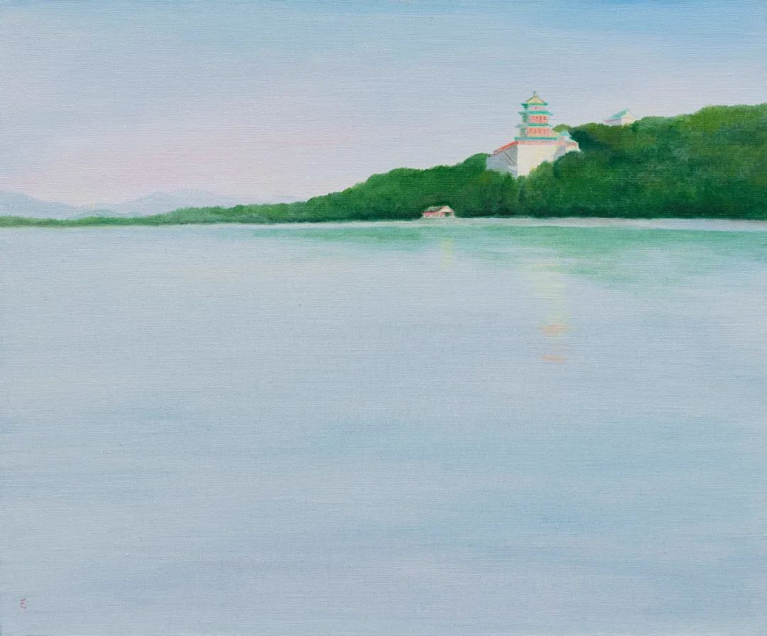 巴黎、布拉格、北京,这些古老的城市,同样有着文本的含义。城市里遍布的古迹,遗存的建筑总是将我们引向遥远的历史发生。在这一点上,人们总是对有历史沉淀的城市有着偏爱,那些满是现代建筑的城市,总是乏味而又单调的活在一个世纪。北京,始于辽金的北海公园,建于明代的故宫,仍有着歪脖子树的景山,这些古迹在武艺的笔下有着全新的活力,你能借着那些古迹的历史去想象无尽的夜晚和白日,有时它们又不是历史,只不过是吸引着画家去描绘的形状,它们和一棵古树一样,在画中有着蜿蜒的身姿,沉默却又动人的时间脸庞。