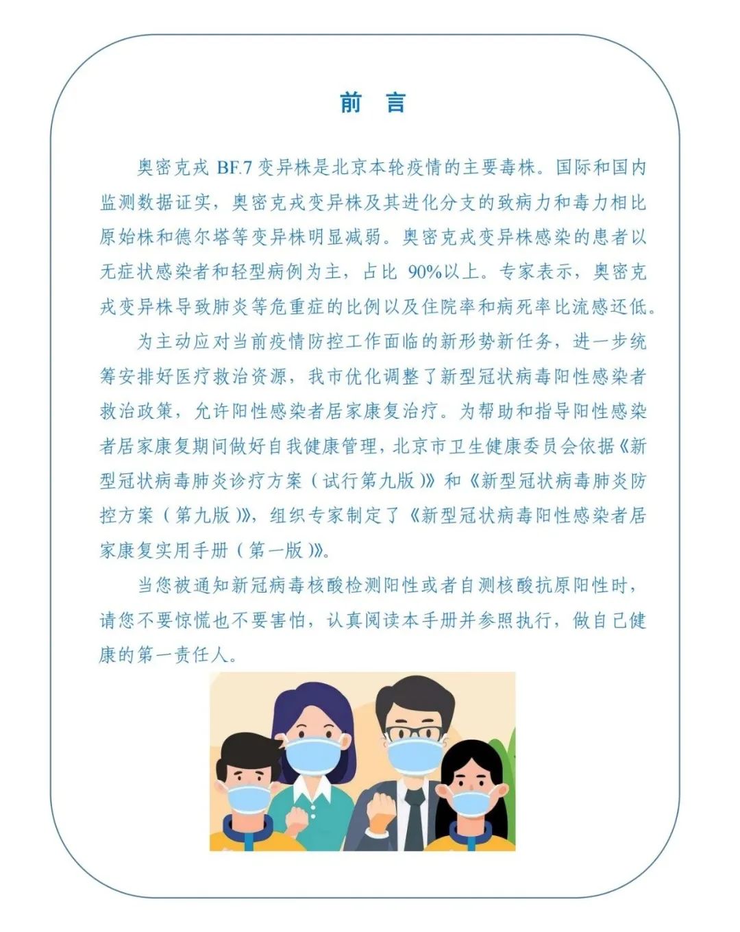 新型冠状病毒阳性感染者居家康复实用手册(第一版)