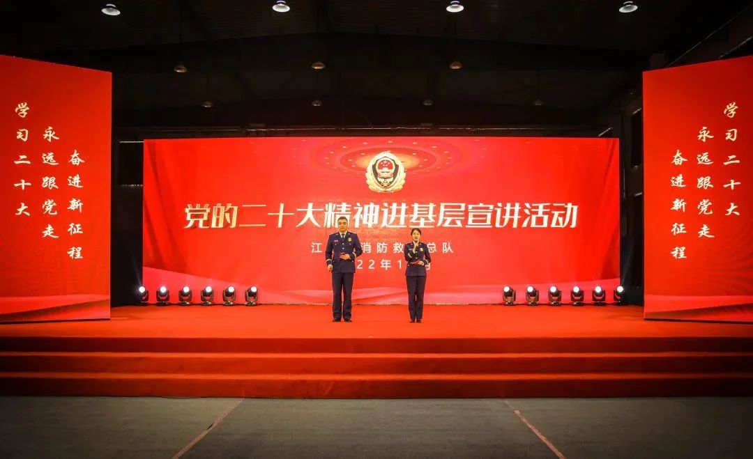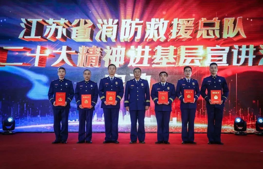 为深入学习宣传贯彻党的二十大精神,引导指战员在不断的学习中知党恩、感党恩,奋进新征程 、担当新使命,树立和涵养正确的价值取向,把思想和行动统一到党的二十大精神上来,江苏省消防救援总队成立党的二十大精神“学习先锋”宣讲团赴全省消防救援队伍开展集中宣讲。