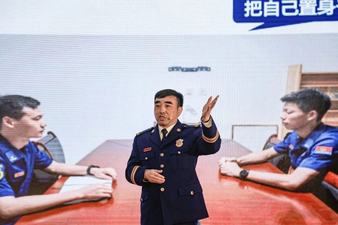 “把感恩之心转化为奋斗之力,在未来奏响属于自己的红门最强音!”南通支队天生港站政治指导员张磊以三位青年指战员“小刘”的故事为引,宣讲凝聚《感恩奋斗向未来》的磅礴力量。