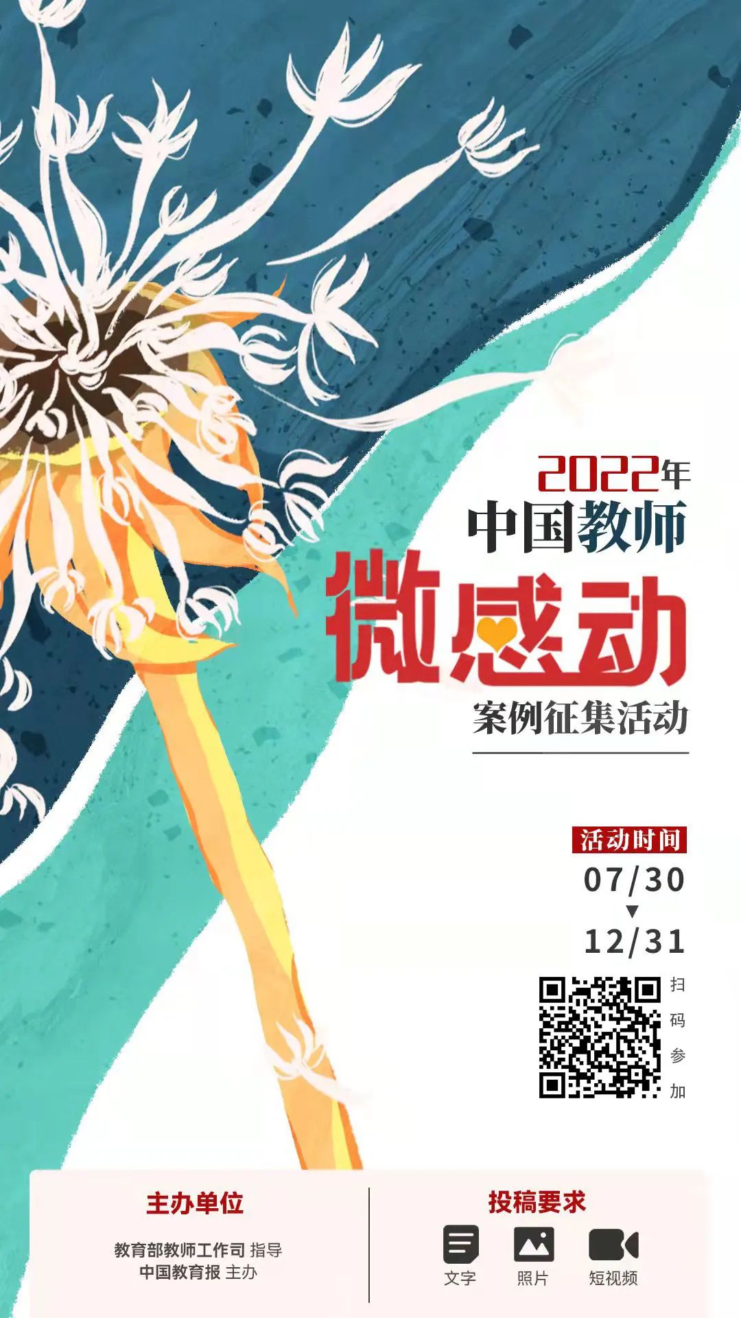 本次征集活动聚焦教师微小的感人故事、瞬间或话语,以小见大,反映各级各类学校优秀教师群体或个人的温暖瞬间、感人故事。要求内容真实、主题鲜明、积极向上、创意新颖、感染力强。征集内容的体裁为文字稿件、照片与短视频。
