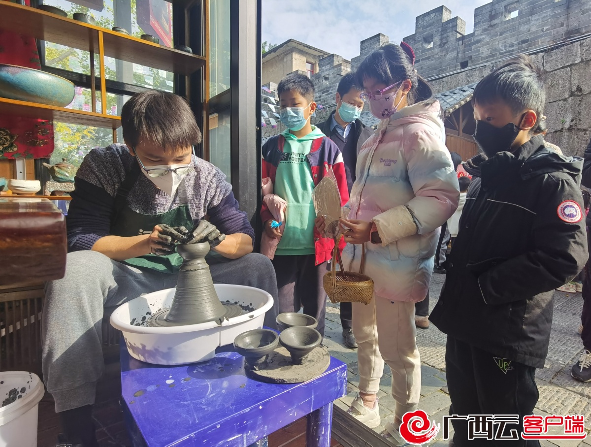桂林艺术节非遗文创集市,手工艺人在制作泥陶。