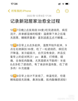 每个人发高烧的感受都是不一样的,高烧头痛真的很难受,体温越往上我对体温变化的反应也越敏感,稍微降一点就会舒服很多,没有我原以为的普通感冒那么轻松,但也没那么可怕。 一开始发烧、头痛,吃了3天退烧药体温正常了,然后开始有咳嗽、喉咙痛、流鼻涕、鼻塞,大概一周左右慢慢恢复。