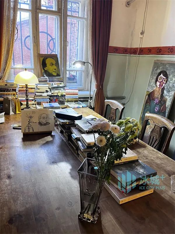 或许是对俄式建筑和老房子有着特殊的情结,10年前,戈雅偶然间发现红专街25号院内的老房子出租,毫不犹豫就租了下来。“红专街25-1号这栋老房子始建于1927年,是砖木结构的折中主义建筑风格。当时这里住着一对俄罗斯夫妇,他们制作的面包远近闻名,不少老哈尔滨人便将这条街称为‘面包街’。”戈雅告诉记者,看到这栋房子的第一眼她就非常喜欢,租了这间老房子后她便将自己的工作室搬了过来,并取名“旧室”。在这里,有戈雅收藏的老家具、俄文图书、老期刊和各种古董,她与一群志同道合的朋友搞创作、看书、聊电影,日子过得非常惬意。