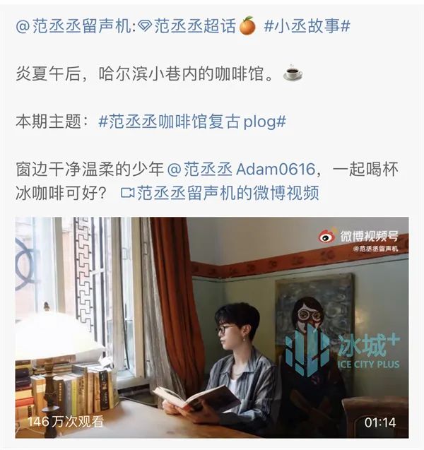 当范丞丞在咖啡馆拍摄的vlog在微博上推出后,瞬间就有了近百万的观看量,吸引了全国各地的游客来到哈尔滨前往戈雅咖啡馆打卡。“咖啡馆像是哈尔滨历史的时光隧道,如果你喜欢这座城市,可以从这里找到岁月留下的痕迹”“点餐的咖啡和饮品名字特别哈尔滨,强烈推荐”“慵懒生活之外的诗和远方,构成了这座城市的乌托邦”,来自成都、北京、上海、广东、郑州等地的游客纷纷为戈雅咖啡馆打call,在老房子里触摸城市历史痕迹,感受哈尔滨城市文化。