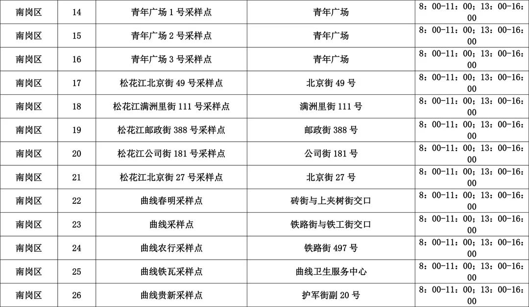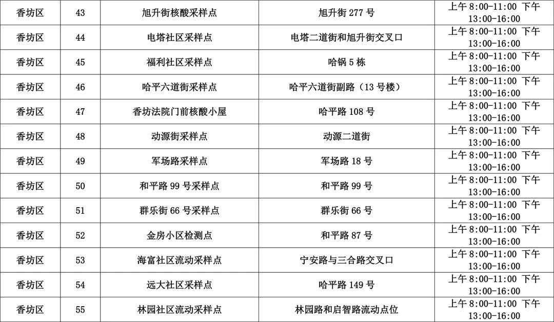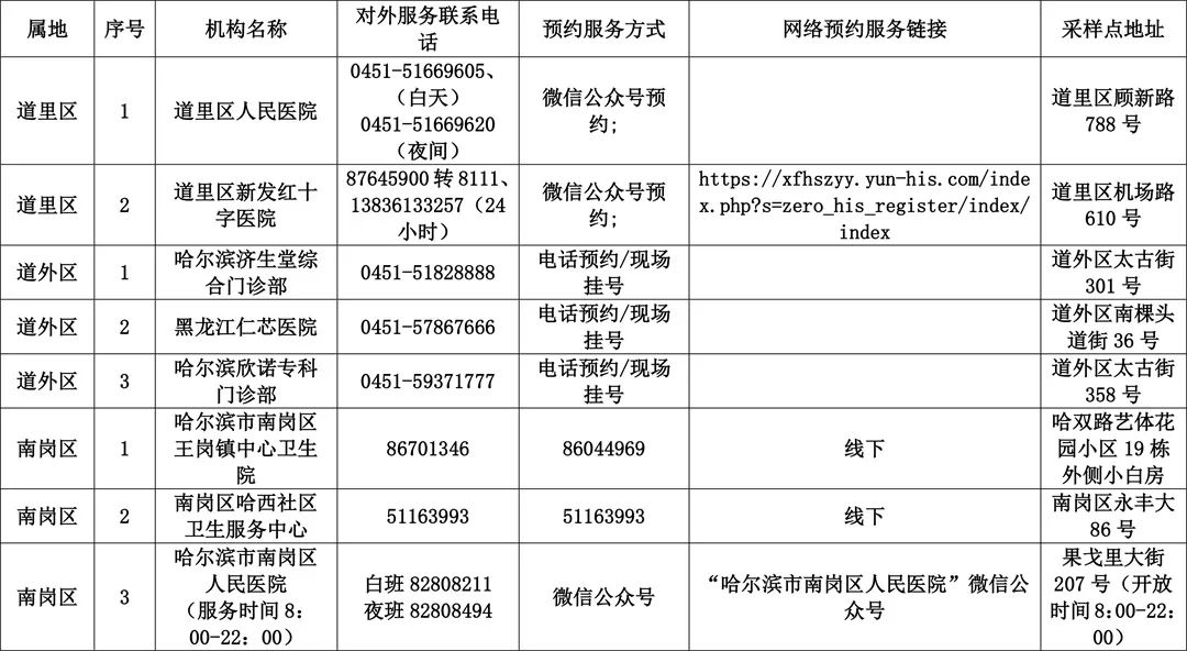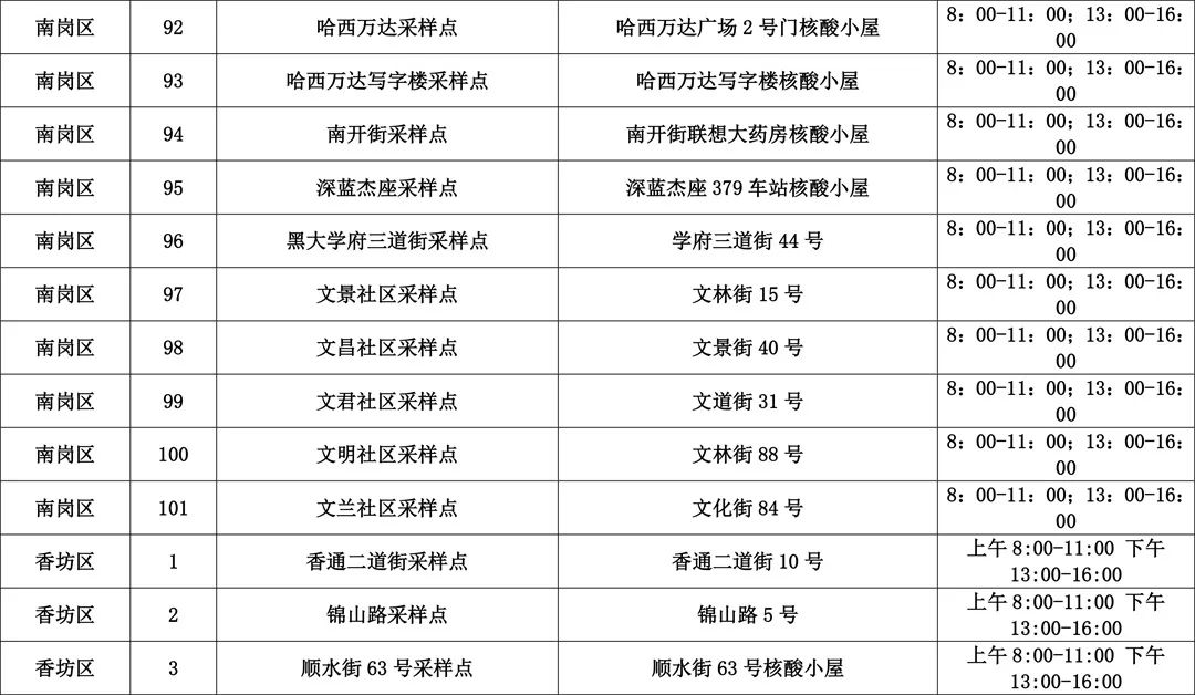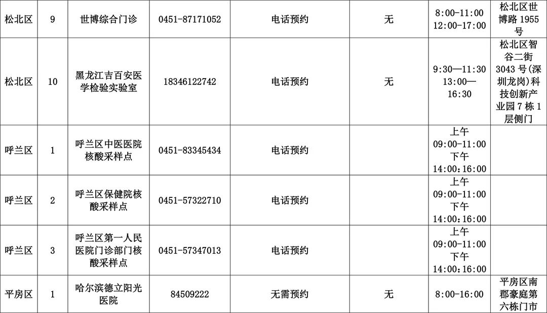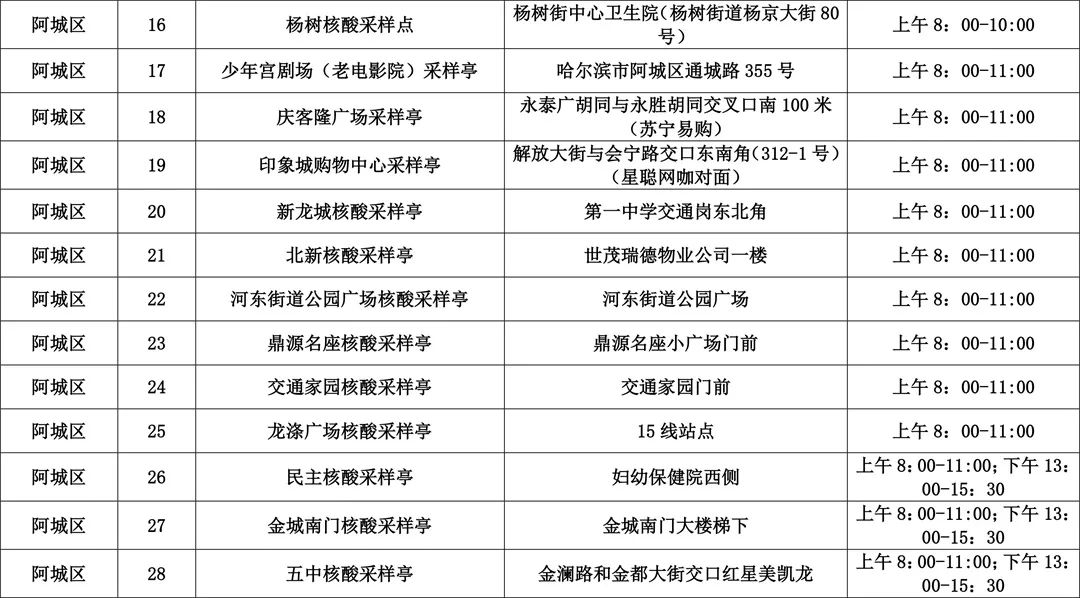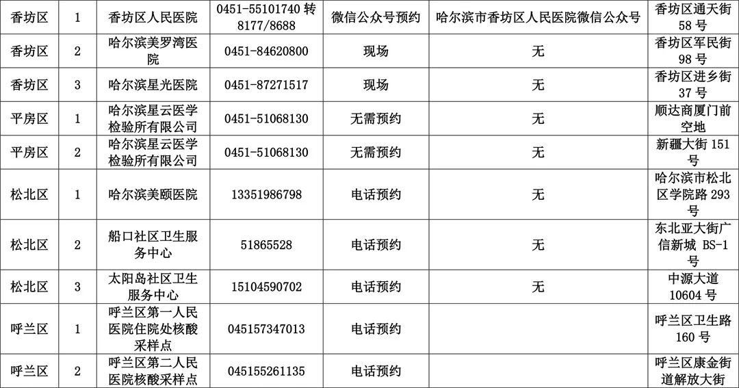 为方便居民按需检测,12月13日对哈尔滨市核酸采样点位进行更新调整,公示如下: