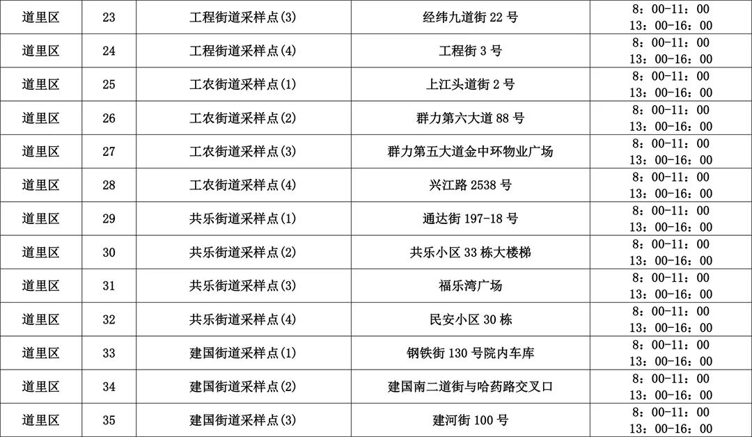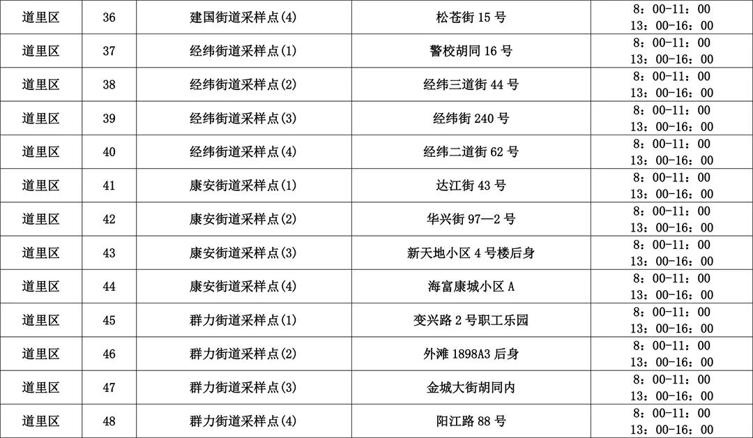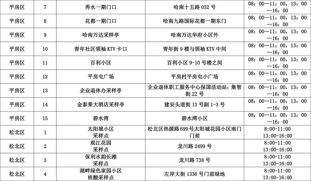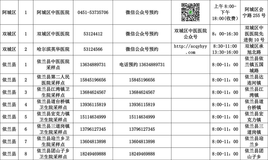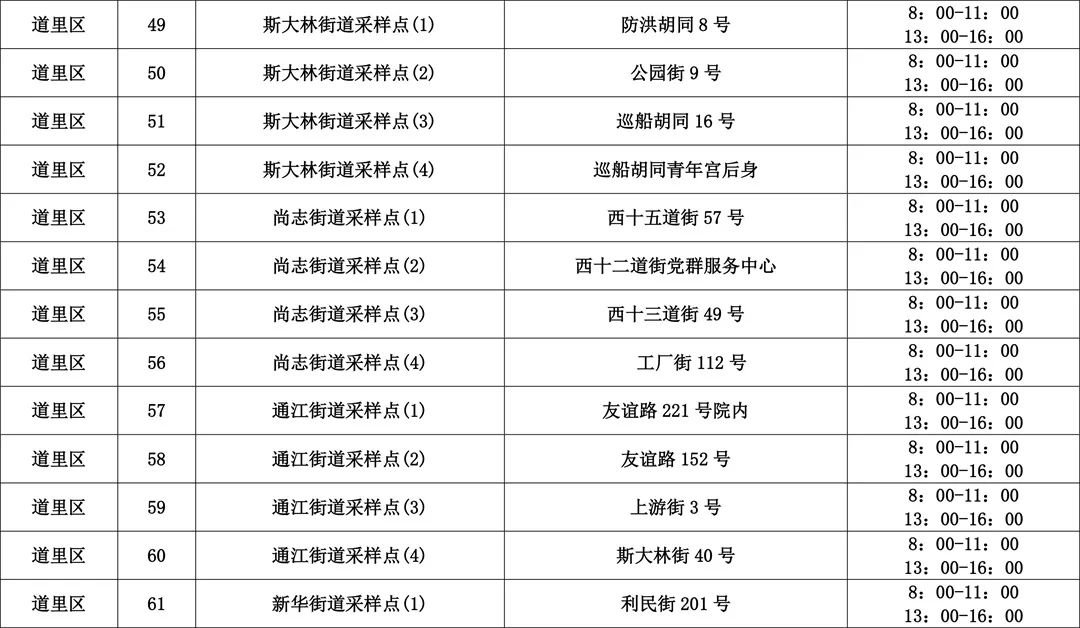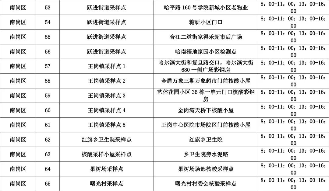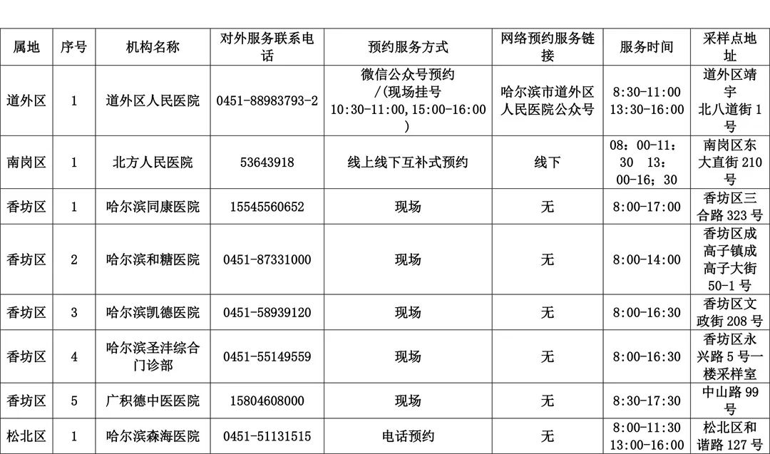为方便居民按需检测,12月13日对哈尔滨市核酸采样点位进行更新调整,公示如下: