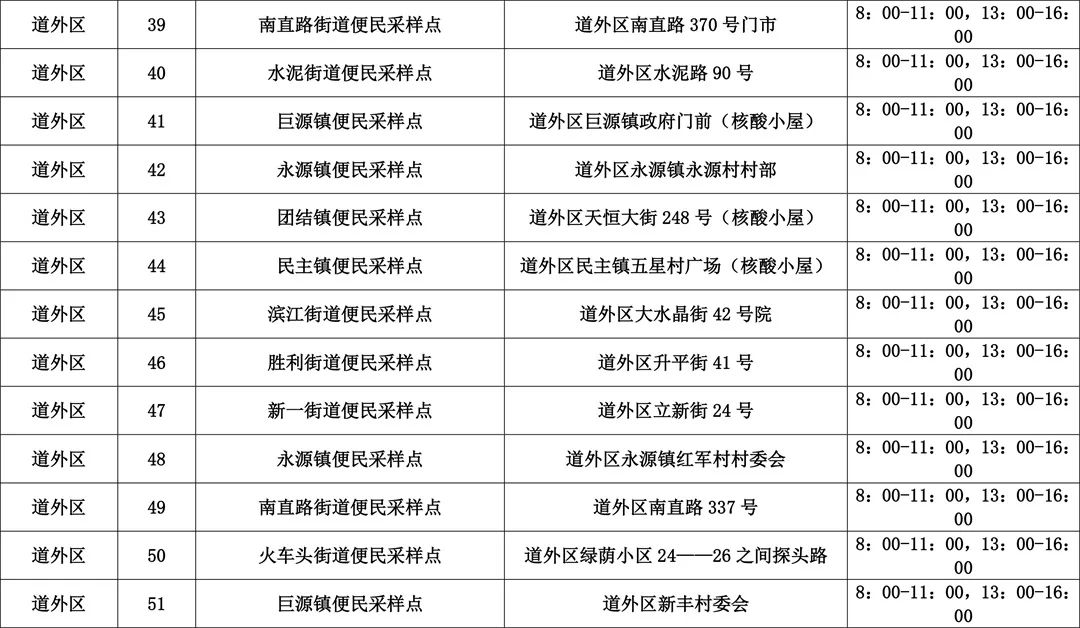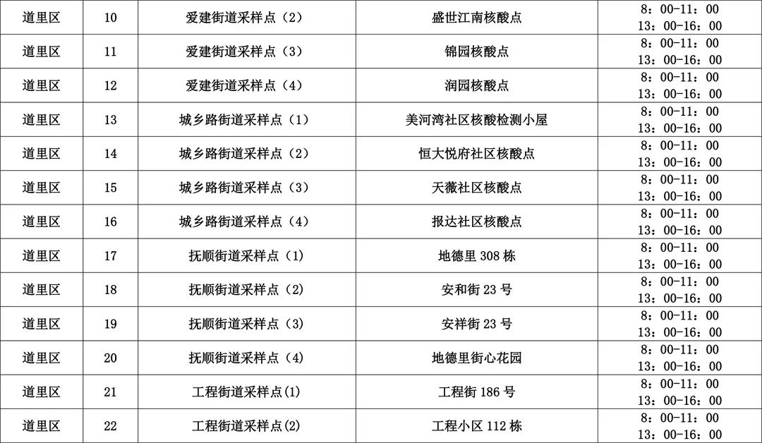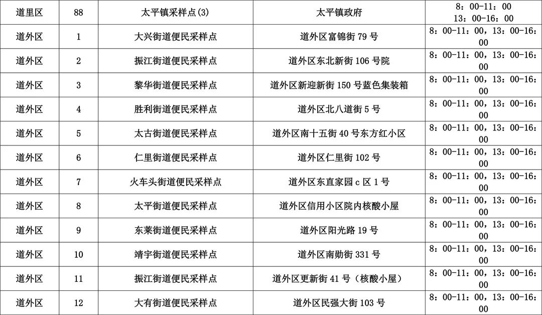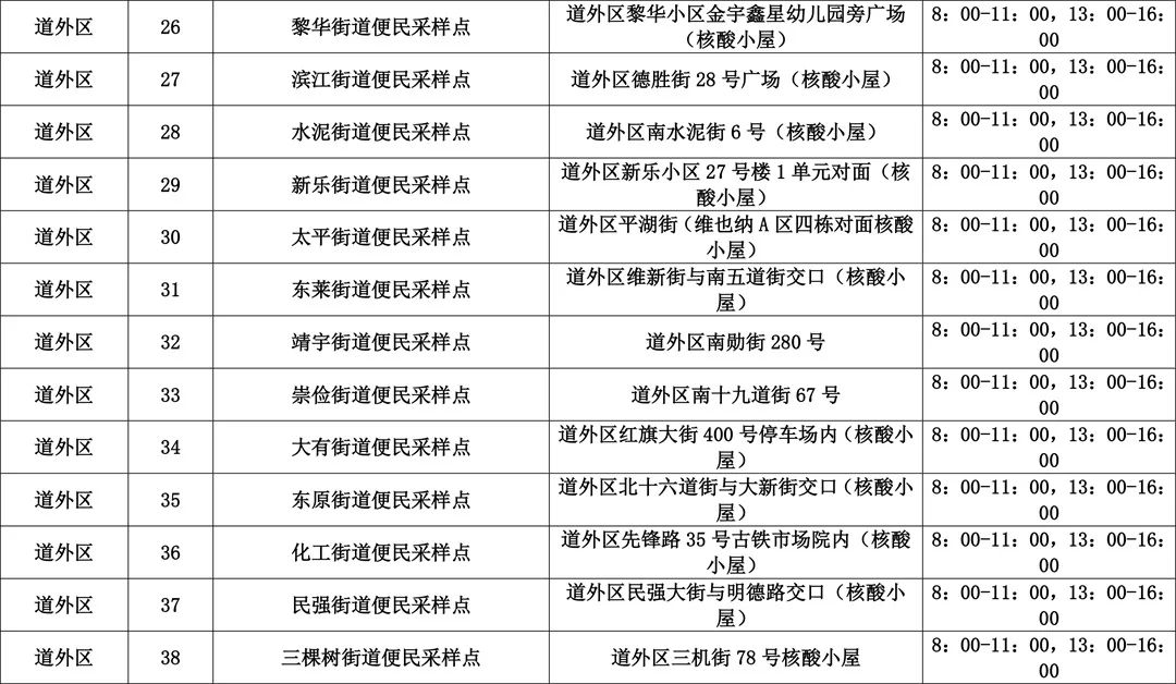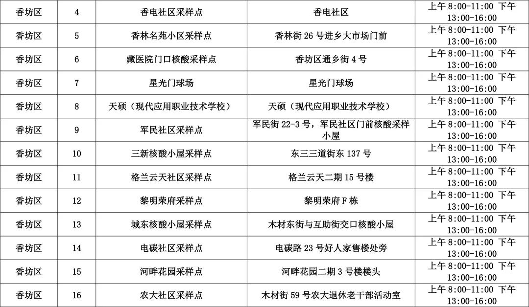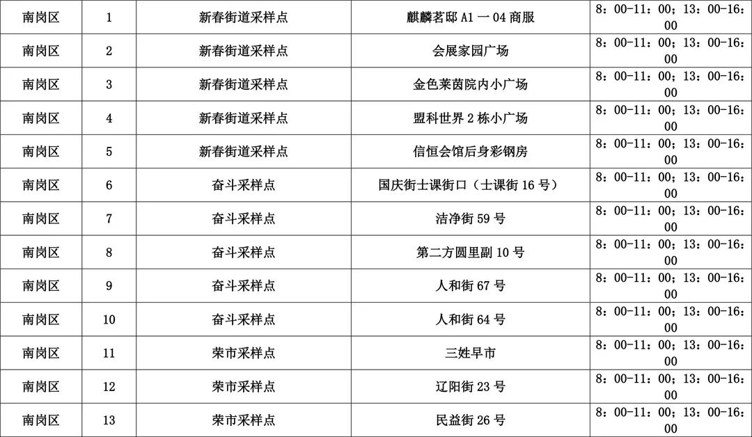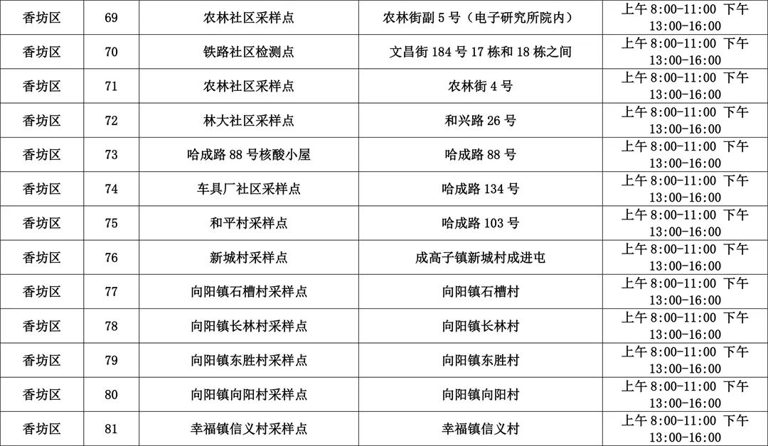 为方便居民按需检测,12月13日对哈尔滨市核酸采样点位进行更新调整,公示如下: