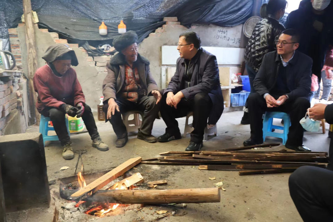 在结对联谊户吕德全家中,杨宏寿向吕德全赠送了慰问品,随后与大家围坐在火堆旁,关切询问其一家人的生活情况和身体状况,“看到两位老人身体都非常好,一家人其乐融融,我感到很欣慰”。他叮嘱老人的子女一定要一如既往的孝敬老人,当地干部要切实尊重老人意愿,做好房屋修缮和帮扶等工作。吕德全老人拉住杨宏寿的手的说,感谢党和国家一直以来对我们的关心关爱和帮助,家里的子女对我非常好,前几天刚给我送了头猪,准备在冬至就宰杀,到时候请您一定要来我家做客,我们对未来的日子充满希望,既努力经营好自己的小家庭,又积极培育爱国爱家的家国情怀,自觉维护祖国统一、加强民族团结,争当民族团结进步先进家庭。