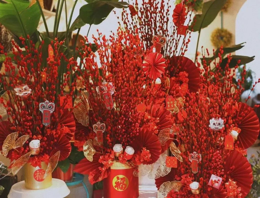 在位于皋兰路的“斑斓花艺”,一束束火红的腊梅在花艺师的巧手下,变化出不同的造型。“红红火火的腊梅,预示着未来的日子也红红火火。”花艺师谢晶说。
