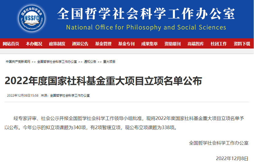 国家社科基金重大项目是目前国家社科基金项目资助体系中层次最高、资助力度最大、权威性最强项目类别,被视作衡量各高校或科研机构人文社科科研实力、学术影响力和科研组织能力的重要指标,是高水平大学建设和双一流学科建设的有力支撑。